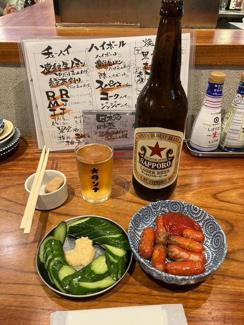 地下へ降りると、立ち飲みスペースとテーブル席がありましたが、もちろん私は立ち飲みを選択。